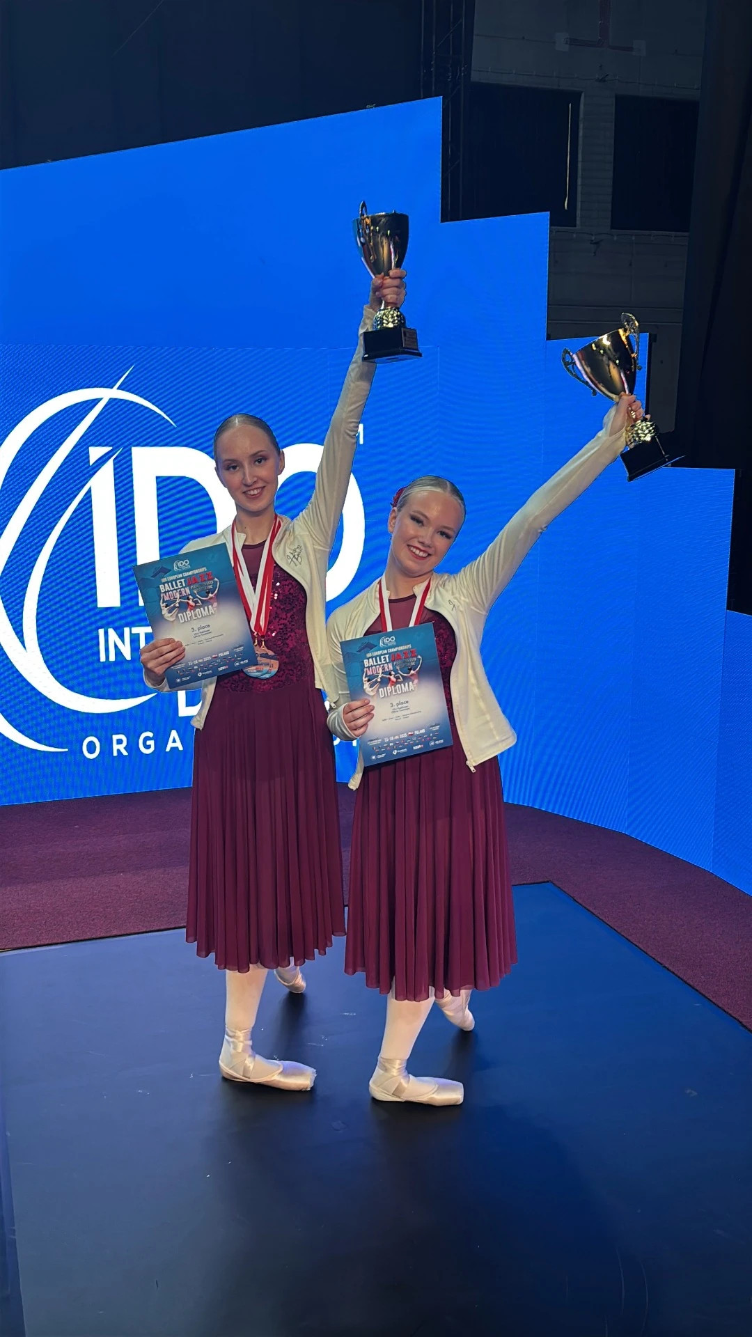 Helsinki Junior Ballet:n tanssijat Olivia Tuominen ja Viivi Häkkinen voittivat kesäkuussa 2025 EM-pronssia neoklassisella duollaan Transcendental Luminosity.